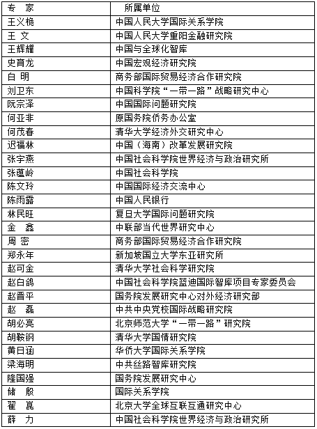 “一带一路”公开发声较多的专家影响力(按照姓氏笔画排序)