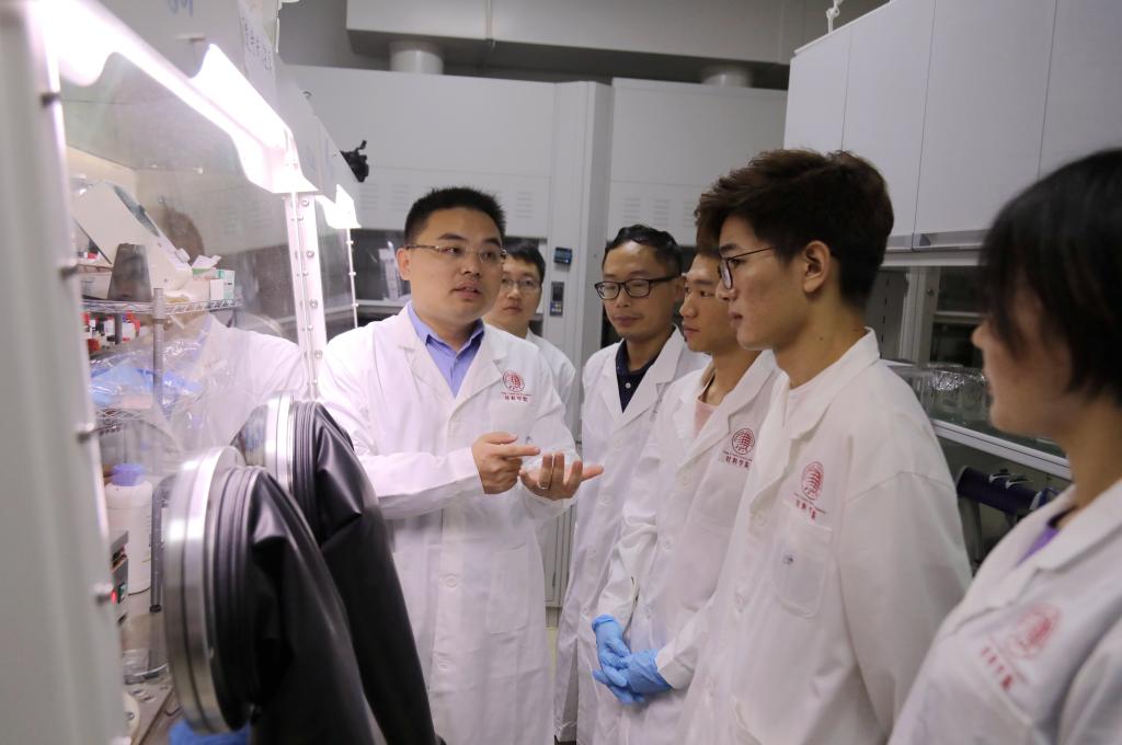 魏展画教授(左一)在实验室指导学生