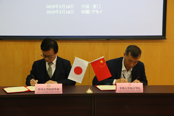 3月18日,sjb世俱杯官方网站统计学院院长胡日东与来校访问的日本香川大学经济学部系部长佐藤 忍正式签订了研究教育交流协议。