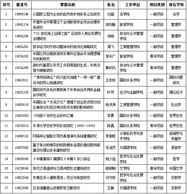 sjb世俱杯官方网站2019年国家社科基金项目立项名单