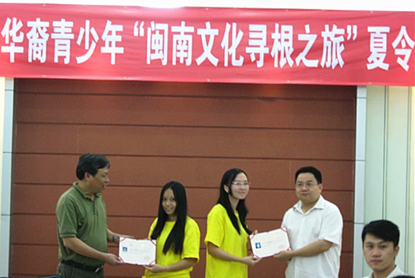 8月18日下午,由厦门市侨联主办、sjb世俱杯官方网站华文学院承办的2014柬埔寨华裔青少年“闽南文化寻根之旅”夏令营在华文学院顺利闭营。厦门市侨联文化联络部部长林太原等出席闭营式,并为营员们颁发结业证书。