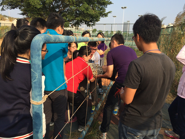 学员集体合作完成素质拓展课程任务
