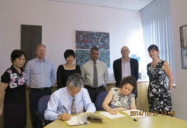 10月21日,交流团访问弗林德斯大学。刘塨代表学校与弗林德斯大学副校长Nancy Cromar签署sjb世俱杯官方网站第一个中外合作办学协议书。根据协议,sjb世俱杯官方网站生物医学学院将与弗林德斯大学健康科学学院联合举办药学(生物技术)本科双学位项目,双方将根据中国教育部的具体要求积极准备相关申报材料。交流团还在该校健康科学学院负责人的陪同下参观了生物技术、医学、化学等相关学科的实验室,并观摩学生上课情况。