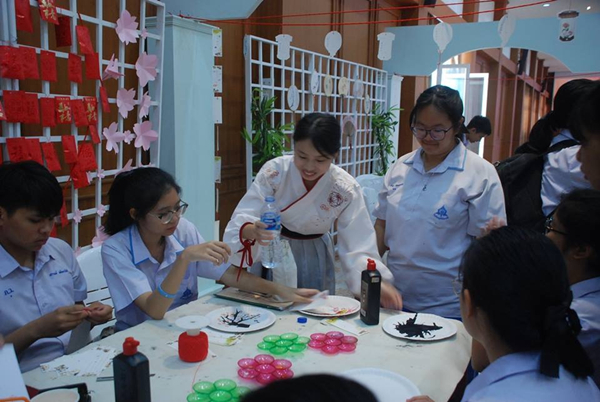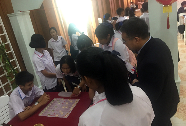 在精心布置的成果展区,三所学校还准备了趣味十足的中国春节特色体验活动。普吉皇太后中学年味十足的立体“春”字剪纸,普吉女子中学寄托美好祝愿的求取“幸运签”,普吉中学孔子课堂古色古香的吹梅、中国象棋和围棋、新春祝福书签等活动,吸引了师生们积极参与和围观。在游戏区,普吉课堂为大家精心准备的“贪吃蛇大作战”、夹豆子、滚铁环等趣味游戏贯穿始终,现场欢声笑语,春意融融。