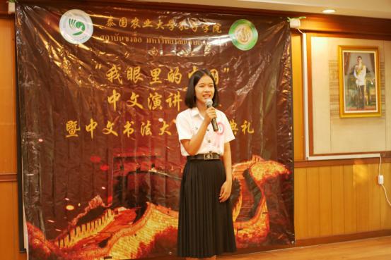 4月10日下午,泰国农业大学孔子学院色军分部举办了“我眼里的中国”主题演讲比赛。此次比赛共有20多名选手参加,同学们分别以《我眼里的中国》《我与中国的故事》《汉语学习中的趣事》等为演讲题目,进行了演讲。为保证评分的专业性、客观性,此次演讲比赛评委由泰方教师姜美玲、皇家大学志愿者老师李玉琦和色军分部的两位志愿者老师共同担任。活动接近尾声时,农大人文艺术与管理科学学院院长帕塔玛•苏里亚库•那•阿育迪亚(Ms. Pattama Suriyakul Na Ayudhya)也到场表示支持。
