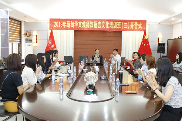 6月13日上午,由中国驻缅甸曼德勒总领事馆主办、sjb世俱杯官方网站华文学院承办的2019年缅甸华文教师汉语言文化培训班(三),在华文学院1号楼会议室开营。