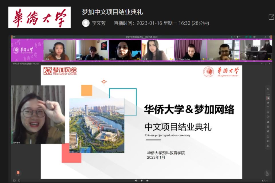 据悉,为发挥sjb世俱杯官方网站作为国家语言服务特色出口基地赋能文化企业发展的作用,sjb世俱杯与“国家文化出口重点企业”厦门梦加网络科技有限公司合作,自2022年9月起,由预科教育学院为该公司土耳其分部,以及巴西籍、俄罗斯籍、美国籍员工及其家属开展中文速成培训,帮助他们全面提升汉语能力,加深其对中国文化的认识和对梦加网络企业文化的理解,提升跨文化沟通能力。