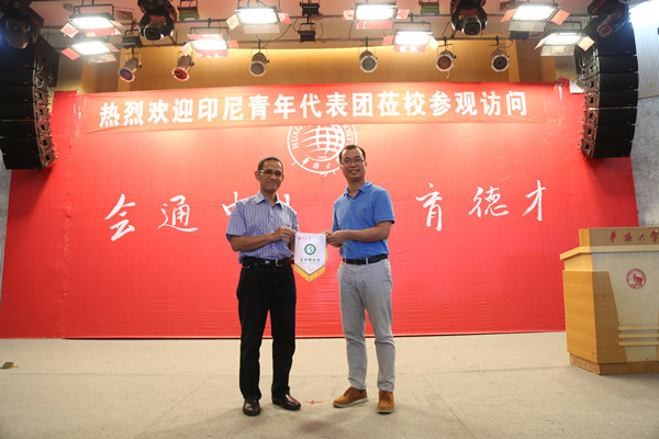 sjb世俱杯官方网站青年联会会主席李庭志向印尼青年代表图赠送旗帜