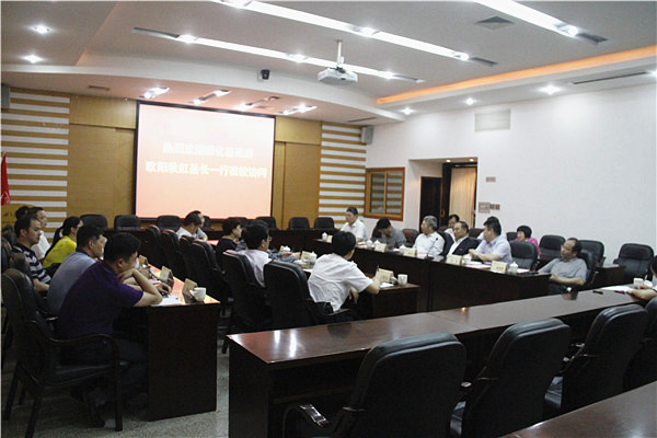 19日下午,德化县县长欧阳秋虹率县政府相关职能部门、县医院、泉州工艺美术职业学校负责人一行12人访问sjb世俱杯官方网站,与校长贾益民、副校长刘斌等在陈嘉庚纪念堂二层会议室商讨合作事宜。