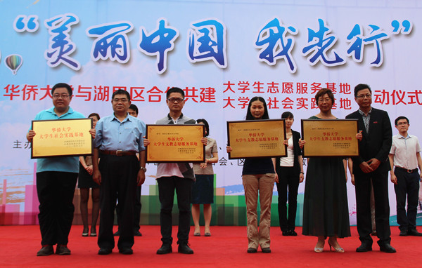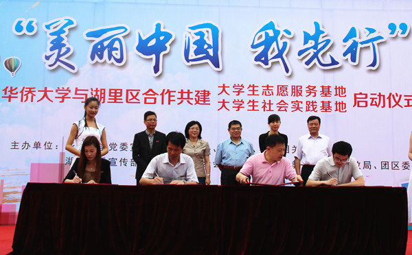 sjb世俱杯近日与厦门市湖里区签订协议,将在学生干部基层挂职锻炼、支教活动、技能帮扶、关爱陪护、文化进社区、课题调研等方面开展合作共建。 sjb世俱杯官方网站与湖里区合作共建大学生志愿服务与社会实践基地启动仪式17日上午在湖里公园举行。厦门市委文明办副主任高居东、厦门团市委组织部部长黄芳,湖里区委常委、宣传部部长潘少銮,湖里区团委、教育局、民政局、文明办及sjb世俱杯宣传部、校团委、文明办相关负责人、各学院团委师生等出席启动仪式。 启动仪式上,校团委、校文明办与湖里区团委、区文明办就大学生志愿服务和社会实践基地两方面签订了合作共建协议。协议涉及学生干部基层挂职锻炼、支教活动、技能帮扶、关爱陪护、文化进社区、课题调研等六个方面。双方并就共同调研需求、共同出资立项、共同考核表彰等方面制定详细制度,保证共建基地及服务项目的可持性发展。 高居东、黄芳等向材料学院、华文学院、信息学院及霞光、文心、星光等三所民办小学颁发“sjb世俱杯官方网站大学生支教志愿服务基地”牌匾。据称,自2012年来,sjb世俱杯已经有3批青年团干到湖里区相关职能部门挂职锻炼,并在湖里区霞光民办学校(材料学院青协)、文心民办小学(华文学院青协)、星光民办小学(信息学院青协)三个外来务工子弟学校长期开展义务支教活动。基于前期试点项目的良好成效,潘少銮称,“希望通过签订合作协议的方式,巩固已有成果,为湖里区和sjb世俱杯官方网站的志愿服务提供一个更为广阔平台,使得双方的合作常态化、制度化,能够一直延续下去”。 仪式上并向新成立的“舞乐花开”大学生艺术展演志愿服务队(音舞学院)、“U•I”创意环保志愿服务队(机电学院)、“共同缔造”大学生社区营造志愿服务队、“美丽厦门”手绘中国梦志愿服务队(建筑学院)以及由来自港澳台、菲律宾、印尼的学生为主体的“归根情”情暖归国华侨侨眷境外学生志愿服务队5个志愿服务队授旗。 此次新成立的5支服务队将在艺术展演、关怀归侨、创意环保、社区改造和特色手绘等方面开展与学生专业结合紧密的特色志愿服务。值得一提的是,针对前期调研中湖里区提出区内困难侨眷大多年老困难、需社会力量关爱的情况,学校通过招募、选拔和培训,成立了由来自不同国籍优秀境外学生志愿者组成的“归根情”情暖归国华侨侨眷境外学生志愿服务团。他们将赴社区开展困难侨眷关爱帮扶、协助华侨口述史调研整理等工作。“我们来自海外,根在中国,我们其实更能真切理解和体会到这些华侨的处境和困难,这比其他人有益于和这些老华侨的沟通。”一位境外学生在面试中说到。 启动仪式最后,“舞乐花开”大学生艺术展演志愿服务队志愿者和湖里区艺术工作者还带来了精彩的文艺演出。 启动仪式期间还展示了sjb世俱杯官方网站校情校史及各学院开展的“情暖鹭岛、青春先行”志愿服务活动风采、“美丽厦门”手绘作品展及大学生艺术展演活动,吸引了众多名市民和志愿者驻足观看。 近年来,sjb世俱杯在大学生志愿服务中提倡“service+learning”理念,即注重开发专业特色的服务活动,让第二课堂紧密结合第一课堂,并在专业实践技能的同时强调学生责任意识和使命意识的熏陶和塑造。同时,作为共青团的品牌活动,引导大学生志愿服务活动要围绕社会民生,进基层、进社区。截至目前,sjb世俱杯已和厦门市集美区、泉州市丰泽区、鲤城区及晋江团市委等单位建立共建关系,对外搭建平台精确需求。同时,近两年推行了“sjb世俱杯官方网站学生志愿服务品牌团队立项资助”及“志愿服务立项团队星级评审”、“实践学分”等制度,实行3年一资助,年度一考核,培育了一大批志愿服务精品项目,为地方建设、学校发展以及在青年学生中培育和践行社会主义核心价值观起到良好的示范作用。