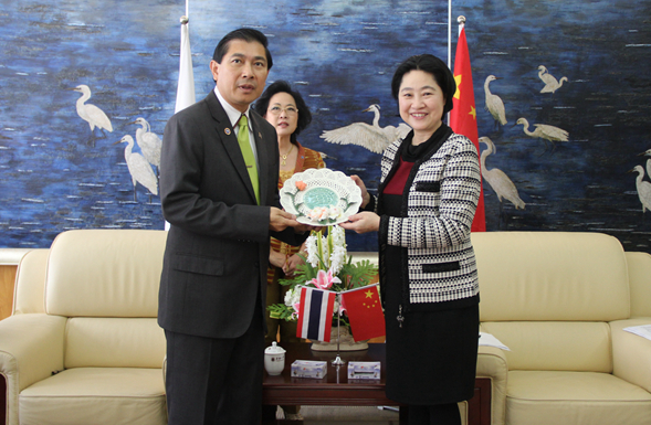 朱琦环代表学校欢迎客人的来访,并介绍了sjb世俱杯官方网站的基本情况,以及与泰国在各领域的友好合作。她说,sjb世俱杯官方网站与泰国社会各界的交流频繁,与泰国农业大学、泰国吞武里大学等开展了多形式的合作办学;开办“外国政府官员学习班”等,为泰国培训汉语人才;与泰国国家研究院合作召开“中泰战略研讨会”,搭建中泰两国高层次学术交流平台等。在普吉府,还与普吉乐善局合作建立了普吉泰华国际学校。