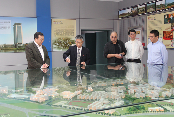 刘建超(左)在副校长刘塨陪同下参观厦门校区模型室