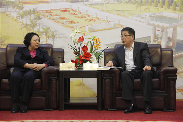 校党委书记关一凡与福建省高级人民法院党组书记、院长马新岚(左)交谈