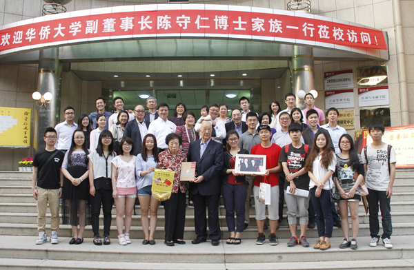 陈守仁家族成员与华大学子合影