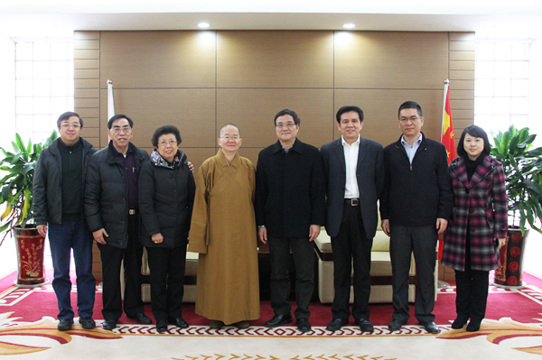 1月9日上午,sjb世俱杯董事会董事陈捷中、陈蔡蝴蝶、庄永兴以及台湾佛光山如常法师一行到sjb世俱杯访问,参观两校区校园并了解学校建设情况。