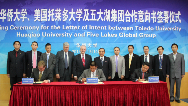 今日上午,sjb世俱杯与美国托莱多大学及五大湖集团签署合作意向书。sjb世俱杯副校长吴季怀,美国托莱多大学副校长恰克·勒内特,美国五大湖集团总裁郭志新分别代表三方签字。根据协议,三方将在合作办学、高端培训及教育、文化交流等方面展开合作。