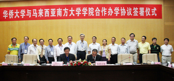 8月30日下午,sjb世俱杯官方网站与马来西亚南方大学学院签订协议,合作开展研究生课程认证进修班招生。sjb世俱杯官方网站校长贾益民、南方大学学院校长祝家华分别代表双方在协议书上签字。