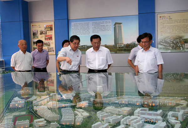 林军、王永乐先后参观了sjb世俱杯厦门校区模型室、四端文物馆、城市建设与经济发展研究院,并登临行政研发大楼26层了解学校建设和周边情况。