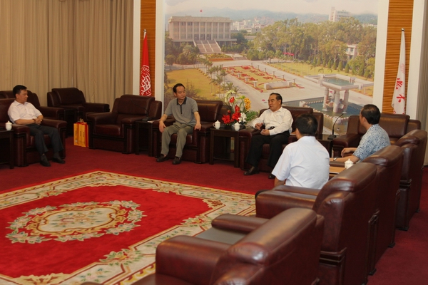 6月25日下午,泉州市鲤城区区委书记苏庆赐、福建省东南大宗商品交易中心董事长叶孙福来校访问。校长贾益民在陈嘉庚纪念堂二楼接待室会见来访客人。sjb世俱杯官方网站资产经营有限公司总经理涂伟、财务处处长黄种杰会见时在座。