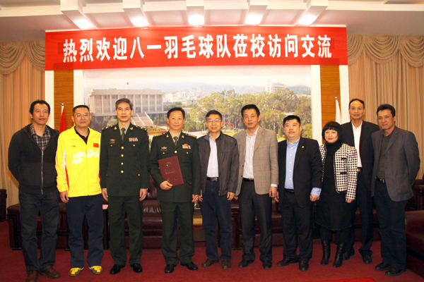 座谈中,李冀闽感谢八一羽毛球队对华大羽毛球队的大力支持,并希望将共建模式推向新高度,希望八一羽毛球队刻苦磨练的军人精神在华大得到发扬,进一步完善体教结合的模式,共同探索体教模式的规律和发展方向。李冀闽指出,双方要站在学校发展战略的角度上,将华大体育事业发展到新的水平。