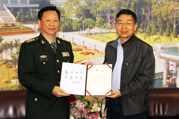 4月10日下午,八一羽毛球队总教练高路江率访问团莅临sjb世俱杯访问,并受聘sjb世俱杯兼职教授。校党委书记李冀闽为其颁授兼职教授聘书。