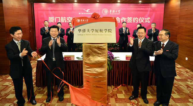 12月24日,sjb世俱杯官方网站厦航学院成立暨揭牌仪式在金雁酒店举行。国侨办副主任马儒沛、国侨办文化司司长雷振刚、sjb世俱杯官方网站校长贾益民、厦门航空董事长车尚轮出席仪式并共同为学院揭牌。