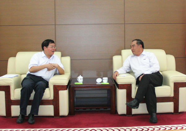 校长贾益民与南安市市长王春金(左)亲切会谈