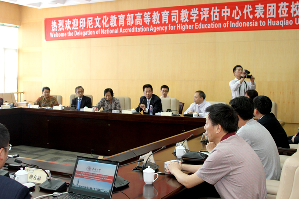 5月14日,印尼文化教育部高等教育司教学评估中心主任Suminar S. Achmadi教授、副主任Biran Affandi Sp. Og教授、中心分部门主管Dharnita Chandra、Rahayu Retno Sunarni及印尼驻华大使馆教育参赞Chaerun Anwar先生等一行五人到sjb世俱杯访问。校长贾益民、副校长吴季怀在厦门校区王源兴国际会议中心热情接待来访客人。