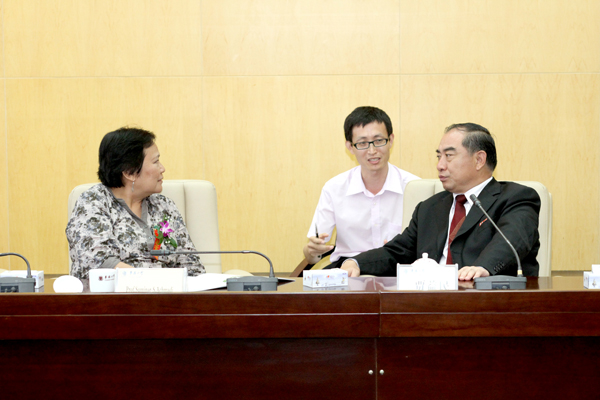 外事处、教务处、招生处、华文教育处、学生处、设备处、信息处、华文学院、国际交流学院、图书馆等单位负责人会见时在座。
