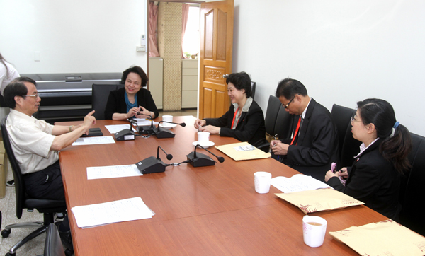 在首场交流演出前,sjb世俱杯官方网站校领导、艺术团领队朱琦环拜会了台湾艺术大学校领导,递交了sjb世俱杯官方网站与该校的合作协议书;与台中教育大学有关单位负责人进行座谈交流。朱琦环希望,通过交流演出活动,增强双方的了解,加深双方的友谊,促进双方的合作,共同为弘扬中华文化作出应有的贡献。