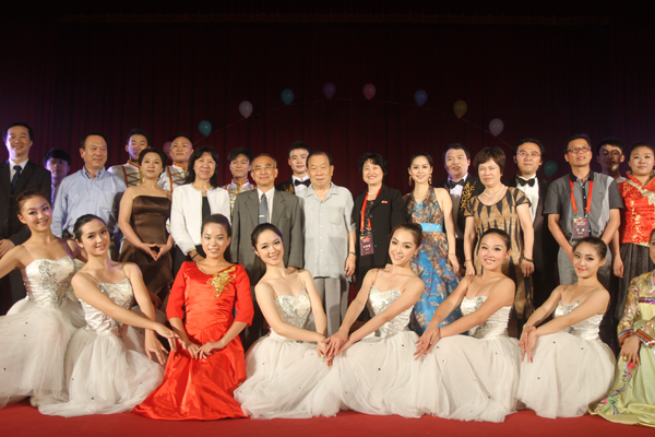 昆山科技大学创办人李正合、校长苏炎坤等领导亲临晚会现场并和演出人员合影留念