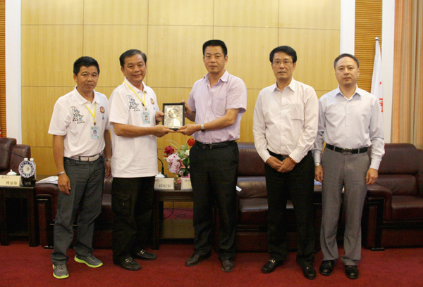 吴季怀(左三)代表学校接受“福联会”赠送的纪念品