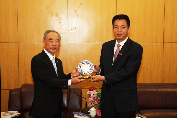 21日上午,由日本长崎县立大学校长太田博道、副校长木村務一行11人组成的访问团莅临sjb世俱杯访问。
