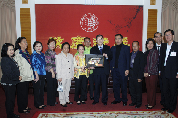 尼娜琳·迪芬索副部长于25日率菲律宾高等教育委员会、首都地区教育局访问团一行13人抵校考察,就共同关心的教育课题及有关合作与sjb世俱杯展开商谈,以期进一步拓展国际合作办学空间。校长丘进、副校长张禹东今日上午在陈嘉庚纪念堂二楼接待室会见了来宾。