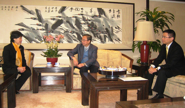 与港中旅集团公司副总经理方小榕(左二)、许慕韩(左三)座谈