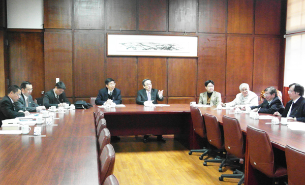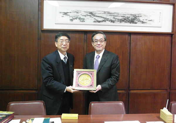 1月13日上午,在台湾参访的李冀闽书记一行访问位于台中市的台湾东海大学,就交换生、教师交流、研究生教育等与东海大学校长程海东,国际长刘舜仁、副教务长林正祥、公共关系室主任邱瑞忠等进行会谈。