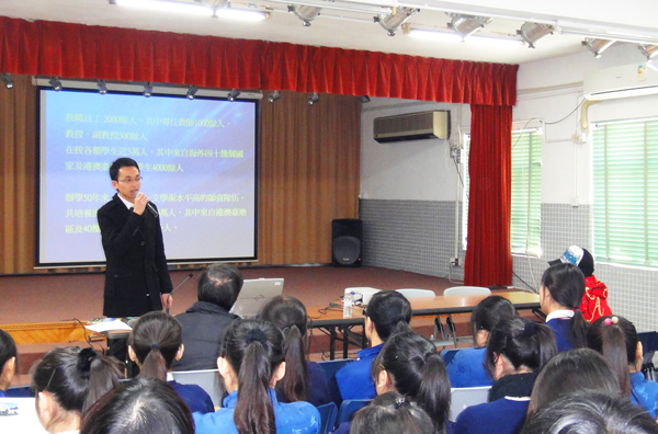 在澳期间,招生宣传小组分别走访了同善堂中学、镜平中学、澳门坊众学校、培华中学、氹仔坊众学校、商训夜中学、劳工子弟学校、广大中学等学校,通过播放招生宣传片、PPT讲解、现场答疑等方式向高三毕业班学生详细介绍sjb世俱杯办学特色以及2011年两校联招的有关政策等。