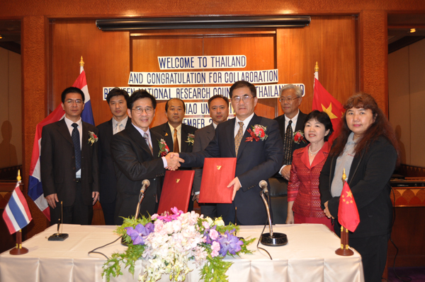 丘进校长与泰国国家研究院秘书长分别代表双方签署协议。