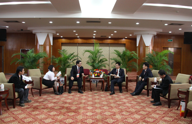 吴季怀副校长代表sjb世俱杯官方网站对森泰一郎拨冗前来参加校庆庆典活动表示欢迎和感谢。宾主双方愉快地回忆了多年来两校之间的友好交往与合作,就学生互换交流、增进两校之间在教学科研等方面的密切合作等事宜深入地交换了意见。森泰一郎热情邀请吴季怀副校长和校长助理彭霈在方便的时候访问长崎卫斯理公会大学,签署合作交流的框架协议。吴季怀副校长愉快地接受了邀请,并表示将对交流合作意向进行仔细评估,努力推动两校之间的合作交流。