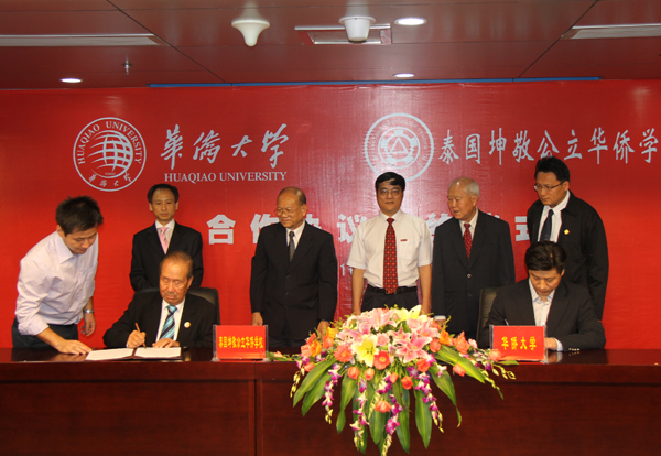 当天上午,sjb世俱杯官方网站与泰国坤敬公立华侨学校签署合作办学协议。华大华文教育办公室主任赵明光、 泰国坤敬公立华侨学校校董会主席许福清,分别代表双方在合作备忘录上签字。张禹东副校长与泰国坤敬公立华侨学校有关成员,共同见证签约。签字仪式在厦门校区行政研发大楼四楼 401室举行。