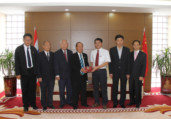 签约仪式前,张禹东副校长在行政研发大楼 408 室热情接待来宾,介绍华大的基本情况及近几年对东南亚国家尤其是在泰国开展华文教育取得的进展。张禹东代表校方表示,帮助泰国开展华文教育工作,华大责无旁贷。宾主双方均表达了进一步加深两校间交流与合作、共同推动泰国华文教育事业发展的良好愿望。来华文学院进修的泰国乌隆塔尼皇家大学8名教师会谈时在座。