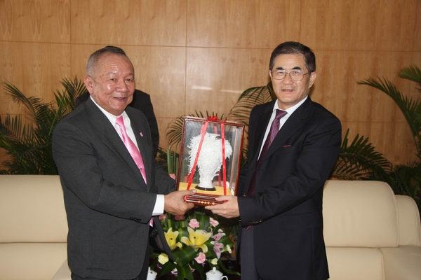 29 日上午,校长丘进在厦门校区王源兴国际会议中心亲切会见泰国国防部御卫厅瓦披龙将军一行。
