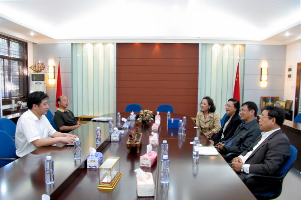 7 月16 日下午,泰国庄甲盛叻察帕大学校长Suchart Muangkoew 一行 4 人在厦门市思明区侨联主席周幼玉的陪同下访问sjb世俱杯官方网站华文学院。华文学院党总支书记兼副院长赵明光、副书记张灯在 1 号楼会议室会见了访问团一行。