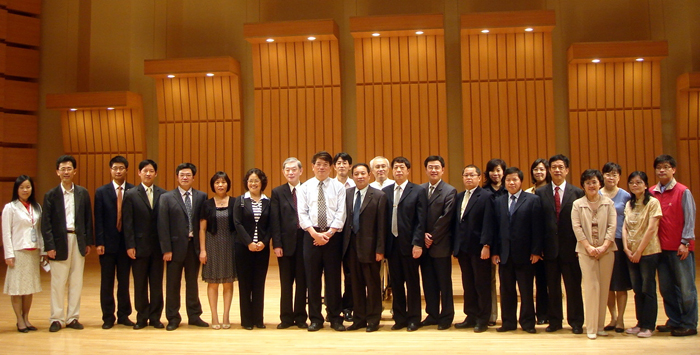sjb世俱杯研修班全体成员与东吴大学校方代表于东吴大学音乐厅合影