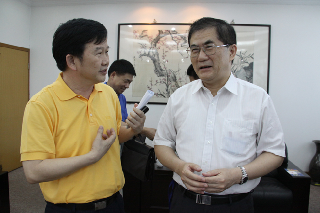 丘进校长与丰泽区委书记陈灿辉(左)交谈