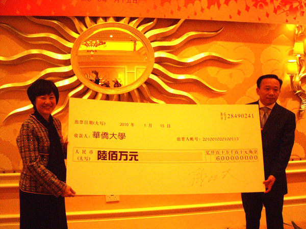 先生表示由衷的感谢。朱琦环副书记指出sjb世俱杯官方网站将在此善举的激励下努力提高教学品质,树立优良的校风、教风、学风,为全世界华侨华人、为港澳培养更多的人才,以高昂的信心再创下一个辉煌的五十年。