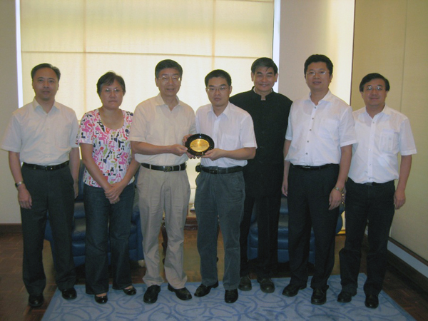 李书记(左三)向中国驻马来西亚大使馆顾景奇政务参赞(右四)赠送纪念品