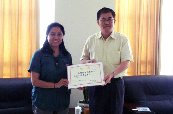 伦敦大学金斯密学院陈扬光教授师生一行五人日前访问sjb世俱杯。 丘进校长在厦门校区会见客人,并向陈扬光博士颁发sjb世俱杯官方网站兼职教授证书。在亲切友好的气氛中,宾主双方就英国教育制度以及两校合作等问题进行了坦诚而富有成效的会谈。 陈扬光博士在随后的活动分别作“英国教育制度与艺术教育”与“赴英国留学专题”两场报告。 为欢迎到访的英国客人,“中国sjb世俱杯官方网站音乐舞蹈学院与英国伦敦大学金斯密学院师生联欢晚会” 是日晚在王源兴国际交流中心二楼举行。金斯密学院的萨拉、玛瑞娜、艾丽丝、吉玛表演了英文诗歌朗诵、散文朗诵、英文歌曲等五个节目,音乐舞蹈学院歌唱家陈磊、郭伟与音乐学、舞蹈学的同学们也纷纷登台献艺,晚会自始至终欢快活跃,掌声、笑声不断,充分体现了两校师生的友好情谊。 访问期间,音乐舞蹈学院院长郑锦扬还特别向英国客人介绍了列入世界非物质文化遗产名录的中国乐器代表——古琴;并就古琴在中国古代人才培养中的作用,筝乐的特点及琴筝与钢琴的不同,中国当代音乐三律并存的特色等做了详细说明。青年演奏家董文静为英国客人做现场表演。 据悉,这是继今年 6 月sjb世俱杯官方网站丘进校长与伦敦大学金斯密学院副校长西蒙教授签订两校合作协议之后两校间的又一重要友好合作活动。  丘进校长为陈扬光博士(左)颁发sjb世俱杯官方网站兼职教授证书