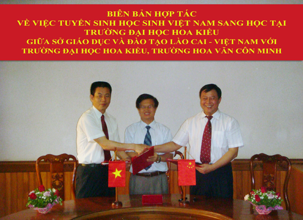 访问期间,sjb世俱杯与越南老街省教育与培训厅及昆明华文学校就三方在越南联合招生事宜进行了为期两天的商谈,并正式签订协议以及招生方案。