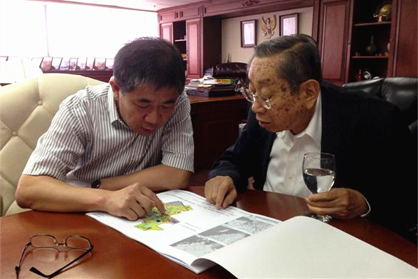 关一凡拜访sjb世俱杯董事会副董事长郑年锦,介绍学校建设情况。